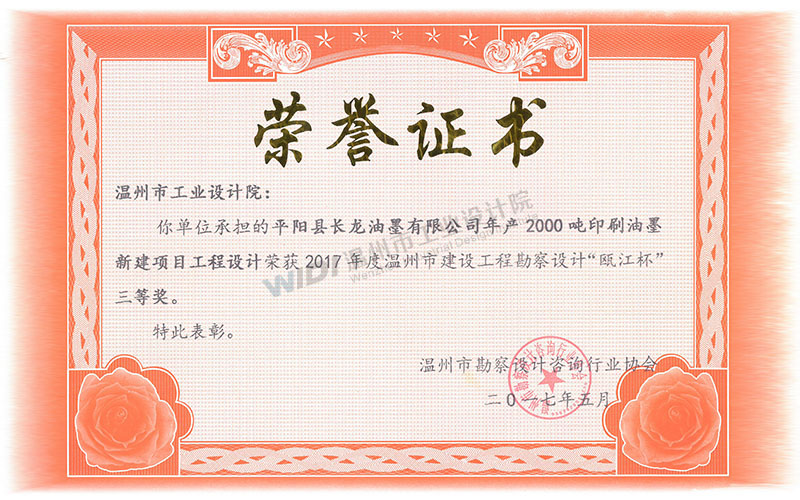 平陽縣長龍油墨有限公司年產(chǎn)2000噸印刷油墨新建項(xiàng)目工程設(shè)計 甌江杯三等獎