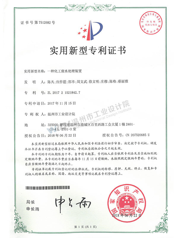 一種化工廢水處理裝置手續(xù)合格通知書 (1)